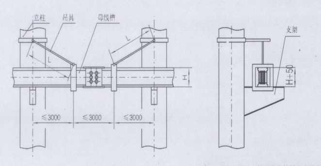 母線槽靠墻安裝時,兩個安裝支架之間的距離應不大于3m